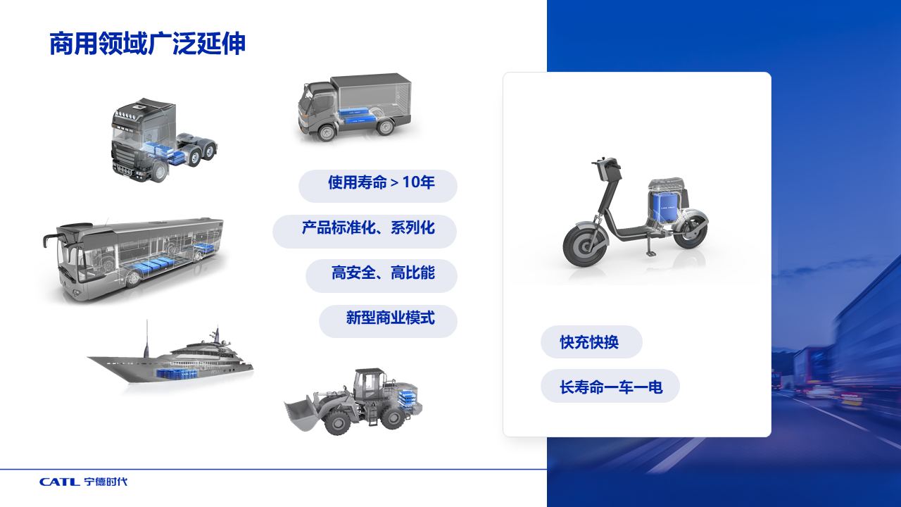 商用领域多数是生产工具,车型复杂多变。针对这一需求,z6com人生就是博·开发了长寿命电池,保证高强度运营的质保需要。标准化、系列化设计的电池包有效提高通用性。和产业链合作伙伴共同推出了车电分离、电池或整车租赁等新型商业模式。z6com人生就是博·还发现家用和外卖送货骑手的两轮车需求不同,因此设计的电池可快充,也可快换,并且电池寿命足够长,一块电池可以服务车辆全生命周期,节省了更换电池的成本。